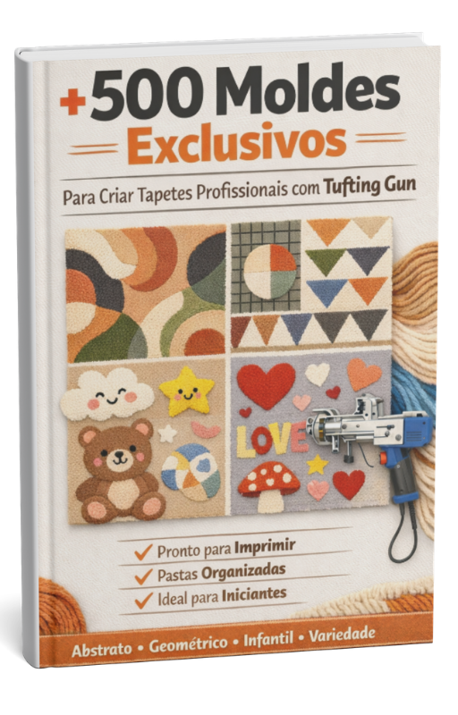 Com esses moldes, você não precisa perder tempo criando desenhos do zero. Basta escolher o modelo, transferir para a tela e começar a tufar